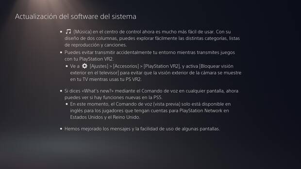 La última gran actualización de PS5 la vivimos hace poco más de un mes con novedades muy importantes para el ecosistema de PlayStation. Sin embargo, esta de la que hablamos hoy no tiene la capacidad de aquella, hablamos de una actualización de firmware un poco más pequeña pero que sirve para proveer de «mayor estabilidad» a la consola. Con un peso de poco más de 1GB, la versión 23.02-08.20.00 nos dejará las siguientes funciones disponibles desde hoy mismo: