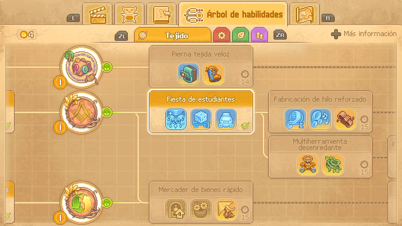 Las principales nos mostrarán diferentes escenas con la voz en off de Tristana y las secundarias nos servirán para seguir mejorando y perfeccionando nuestras habilidades en cocina, en la elaboración de festivales o en las ventas de nuestros productos. Además, podemos alternar entre unas y otras con mucha facilidad gracias a su accesibilidad. Por otro lado, las misiones principales nos exigirán tener que desbloquear diferentes habilidades que encontraremos en el árbol de habilidades. Éste, estará bastante desarrollado y dividido en diferentes apartados.