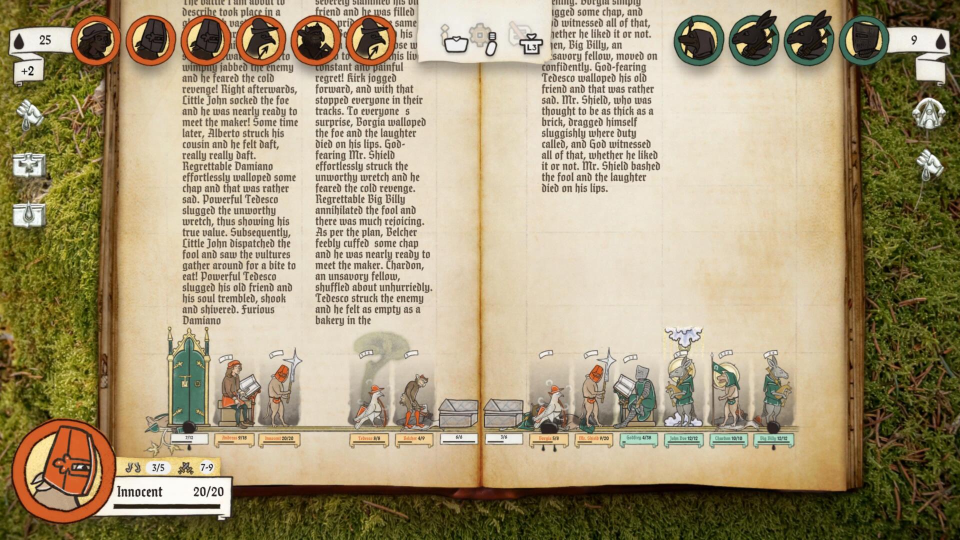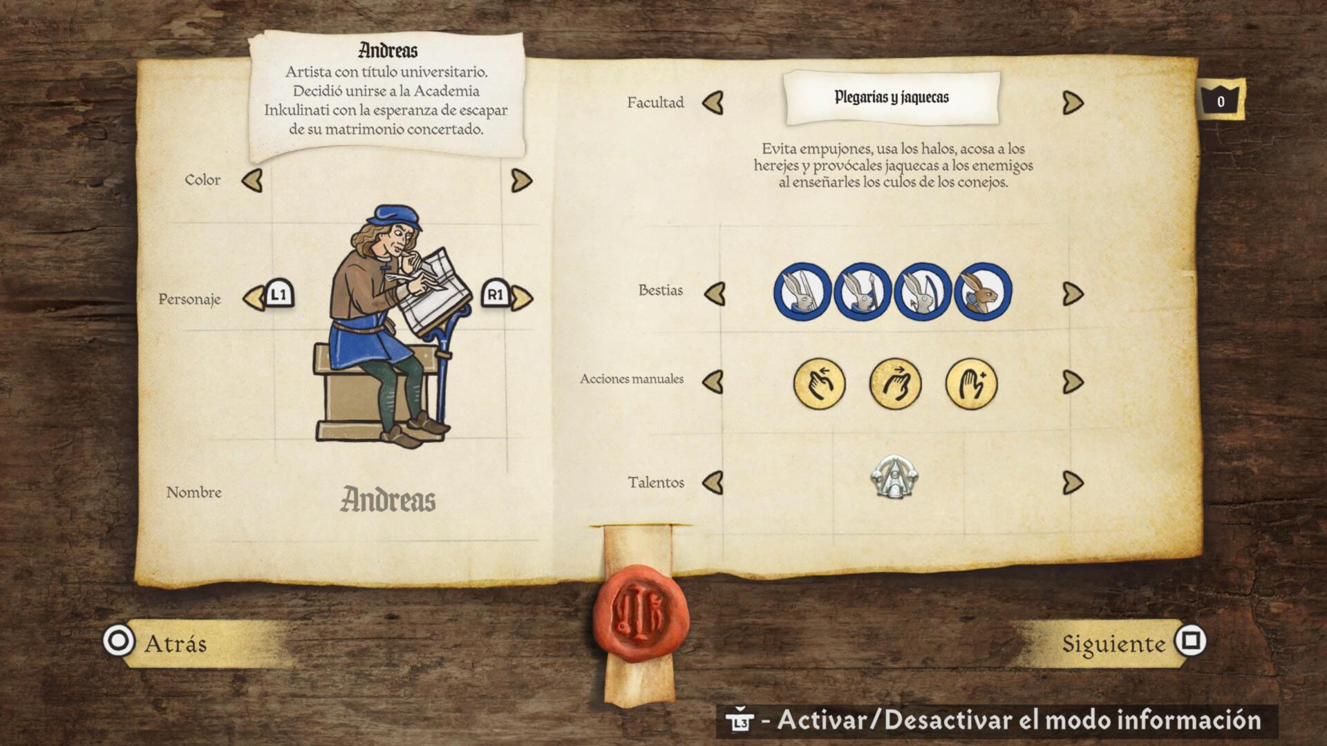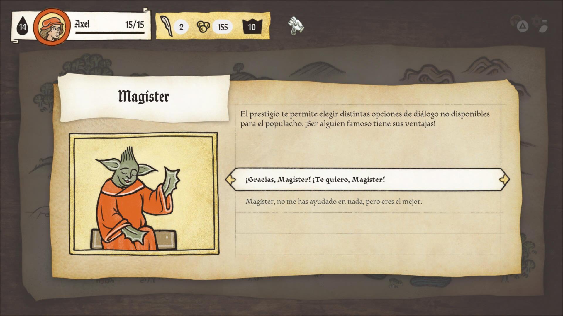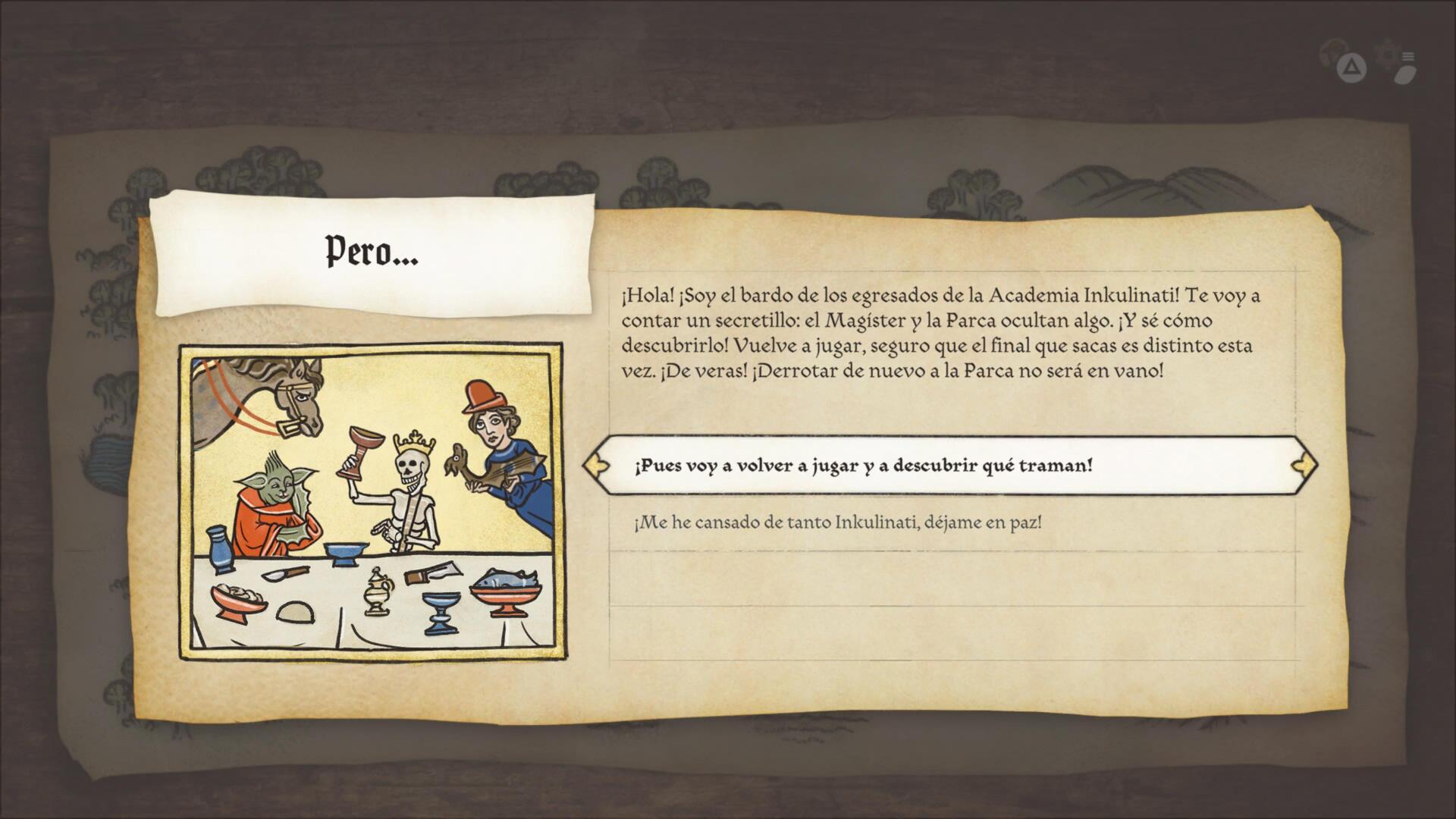 Cada partida es única pero nosotros comenzamos siendo un aprendiz de Inkulinati quién se aventura a través de nuestras habilidades como escriba a un viaje para ir con nuestro Magister… quién es un cachondo con patas, y dónde a medida de diversas elecciones iremos evolucionando.