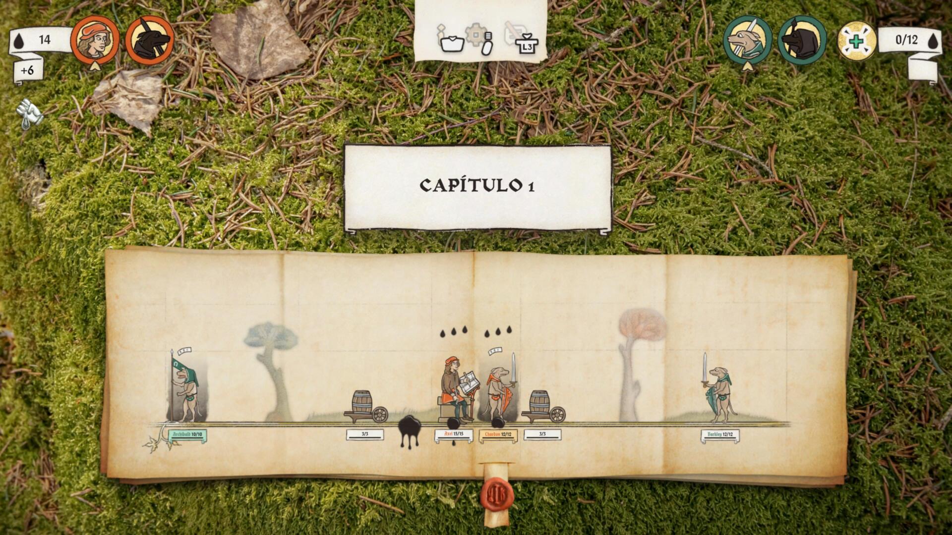 En cada aventura podremos elegir el personaje que queremos ser, nuestro talento, nuestro set de bestias de tinta inicial y la acción única que queremos tener. Tras esto se nos mostrará un mapa con diversos caminos que deberemos recorrer de forma lineal por lo que deberemos estar atentos a los iconos.