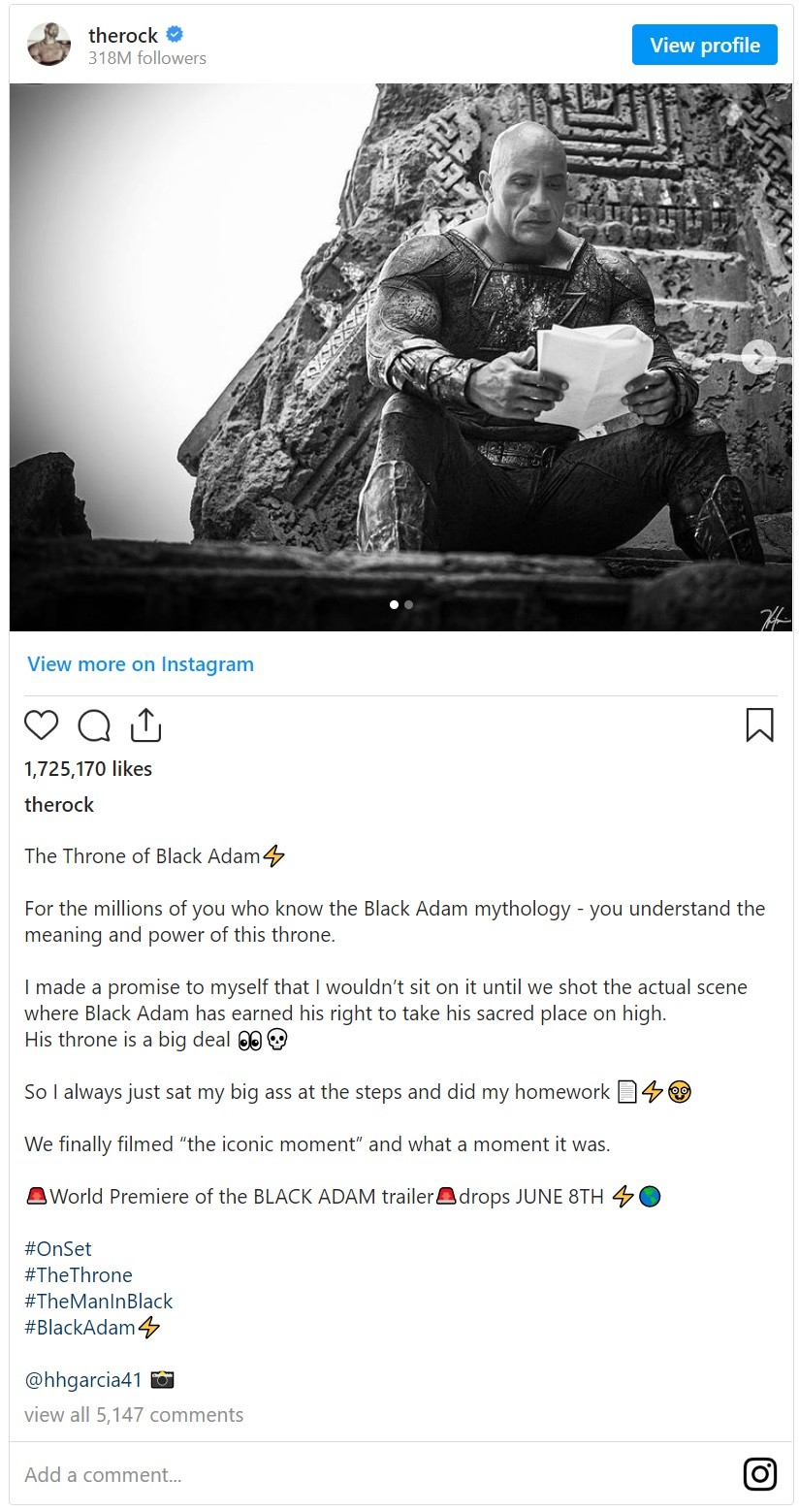 Black Adam tiene previsto su estreno el 21 de octubre de 2022 en Estados Unidos (algo parecido aquí en España) pero aún no hemos podido ver el tráiler oficial. Pues bien, ha sido el propio actor principal Dwayne Johnson el que ha revelado cuando veremos el mismo.