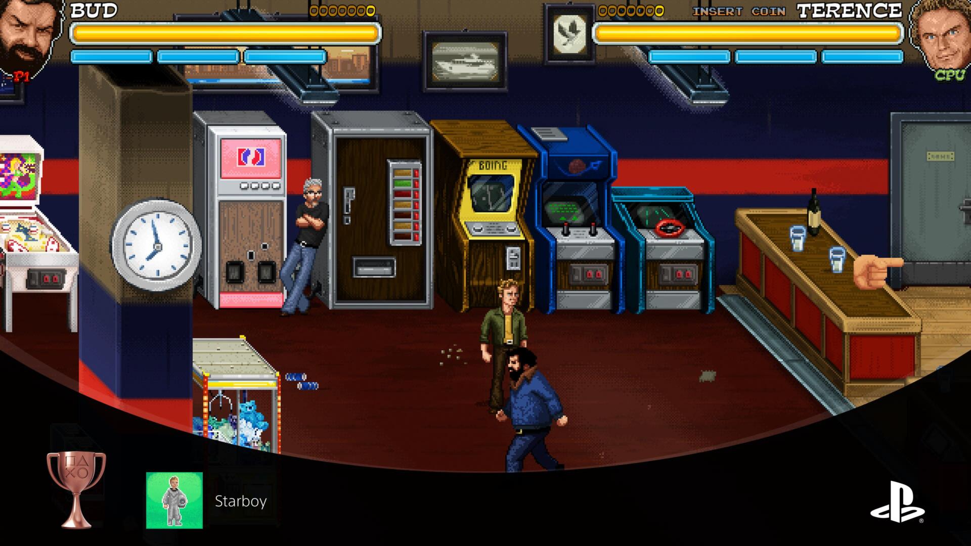 Casi al finalizar el Nivel Chinatown se nos pide obtener ropa de incógnito para lo que tendremos que subirnos a una azotea combinando las habilidades de Terence y Bud. Cuándo logremos que ambos lleguen a la azotea objetivo veremos a un NPC que es Alex con el que deberemos interactuar para que nos de el trofeo.