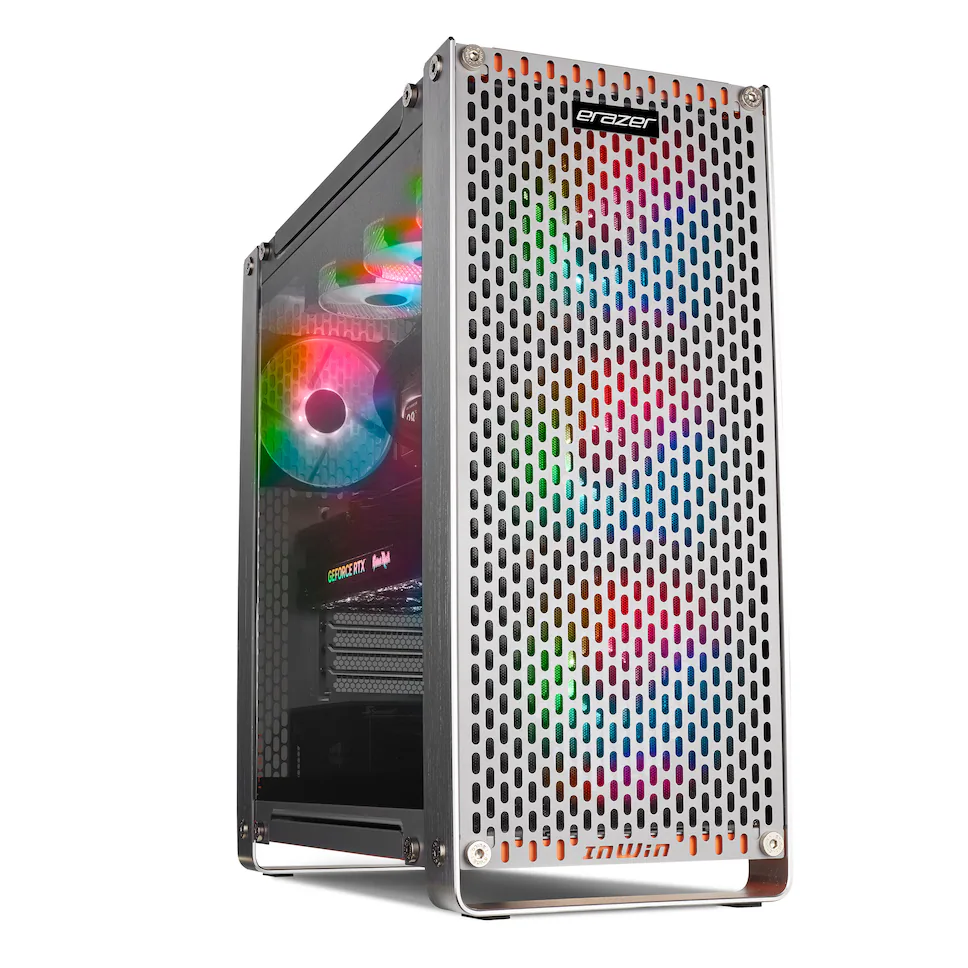 El PC Gamer de la compañía iba revestido con una exclusiva carcasa de aluminio InWin Dubili con paneles de acero de 1,2mm. En su interior nos encontramos con un i9 14900KF y una tarjeta gráfica Palit NVIDIA GeForce RTX 4090 GameRock. Siguiendo tenía una Memoria RAM Kingston Fury Beast RGB DDR5 de 64Gb y una SSD WD Black SN850x con 4TB de capacidad. Todo ello con una placa base Gygabyte Aorus Z790, un sistema de refrigeración por agua con una pantalla LCD de 2,8″» y una fuente de alimentación GX-1200 de Sasonic para alimentar a la bestia.