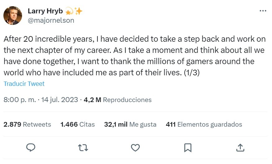 Hablamos de Larry Hryb, popularmente conocido como Major Nelson, que abandona Xbox después de 20 años como director de programación.