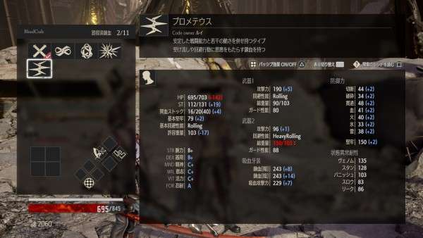 Por otro lado los compañeros nos presentan la clase Prometheus. Se trata del «Código de Sangre» que obtendremos de un personaje. La descripción de dicha clase es que debido a la voluntad de Louis, endurecida por las dificultades por salvar a los Revenant de su posible destino de convertirse en Perdidos al sucumbir a su sed de sangre. Un código de sangre bastante equilibrado pero con debilidades.