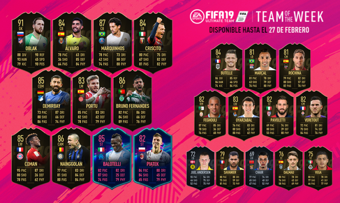 Esta semana encontramos en él a jugadores como Oblak, portero del Atlético de Madrid; Álvaro, central del Villarreal; Portu, centrocampista del Girona; Balotelli, delantero del Marsella…. En la imagen podéis ver todos los jugadores.
