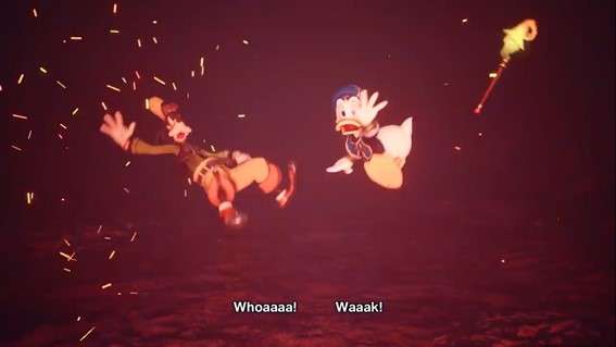 Esta parte es una de esas que da lugar a pocas dudas y es que aparecen en pantalla Donald y Goofy donde suponemos que andan buscando a Sora de entre los muertos por lo que han decidido acudir una vez más para comenzar a la aventura al Inframundo. Donde una característica llama azul nos revela al personaje de Hades. El resto…Bueno tardaremos varios años en conocer más.