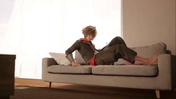 Después lo primero que nos encontramos es un tranquilo piso, a priori habitado por un único chico que descansa plácidamente sobre un sofá blanco (si los colores son importantes para Nomura lo sabemos todos). Para sorpresa de todos que ese chico acaba siendo Sora, quien ha experimentado una evolución física notable en este tiempo que lleva dormido, tan solo siete días pero bien aprovechados oye. Y sí, se confirma por primera vez que nuestro querido protagonista tiene pies normales y que no llevaba siempre semejantes zapatones por comodidad.