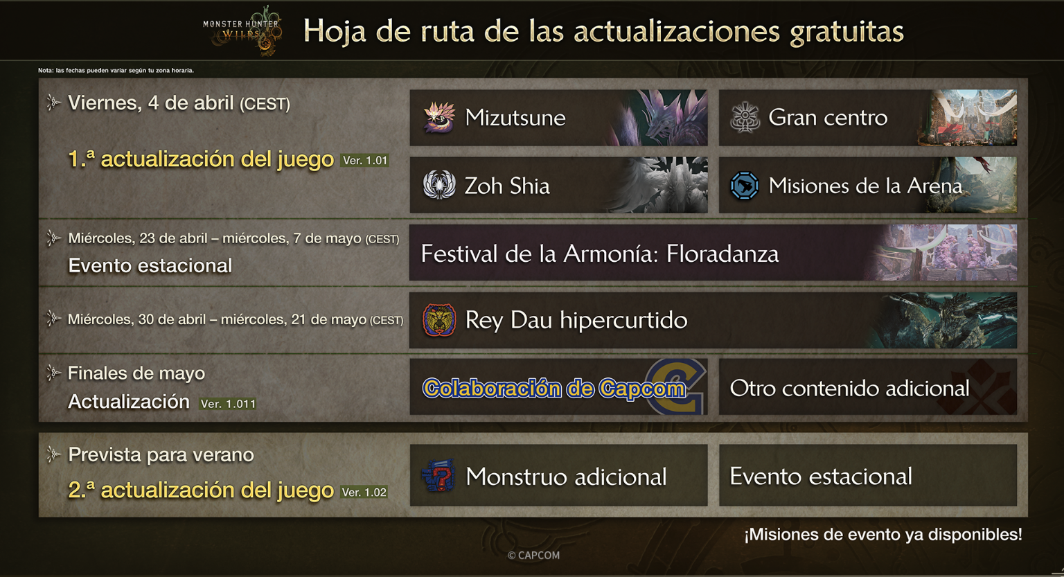 Revelados todos los contenidos de la primera actualización de Monster Hunter Wilds con SORPRESA PARA VERANO