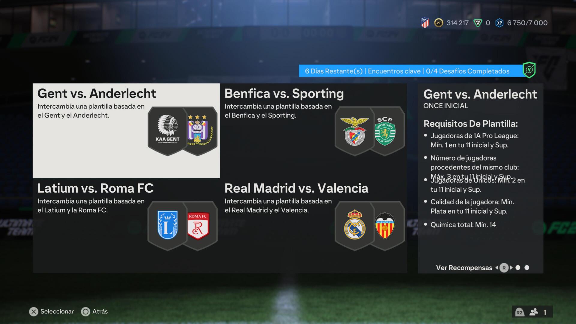 - «Real Madrid vs Valencia»: Conseguiremos Sobre Pequeño de Jugadores Oro Únicos. Los requisitos mínimos para esta plantilla son los siguientes: Mínimo 1 jugador del Real Madrid, mínimo 1 jugador del Valencia CF, mínimo 5 países o regiones, un mínimo de 3 jugadores únicos, una valoración media de 76 o más y una química total de 26 o más.