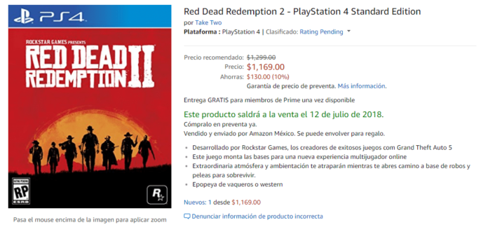 Uno de los anuncios que más esperamos es el de la fecha de lanzamiento de Red Dead Redemption 2. Ahora, Amazon México ha puesto fecha, indicando que llegaría el próximo 12 de julio.