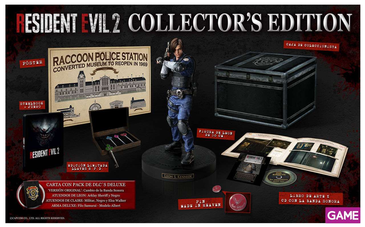 GAME ha mostrado las dos ediciones especiales de Resident Evil 2 Remake que venderán en sus tiendas. Una es la Steelbook Exclusiva GAME (la cuál costará lo mismo que la normal para todos aquellos que la tengan reservada, ya que sustituye a ésta en las tiendas) y la otra es la Edición coleccionista, actualmente agotada.